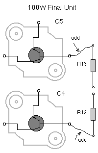 driver-transistors], and Q7 [bias-transistor] on the 100W Final Unit.