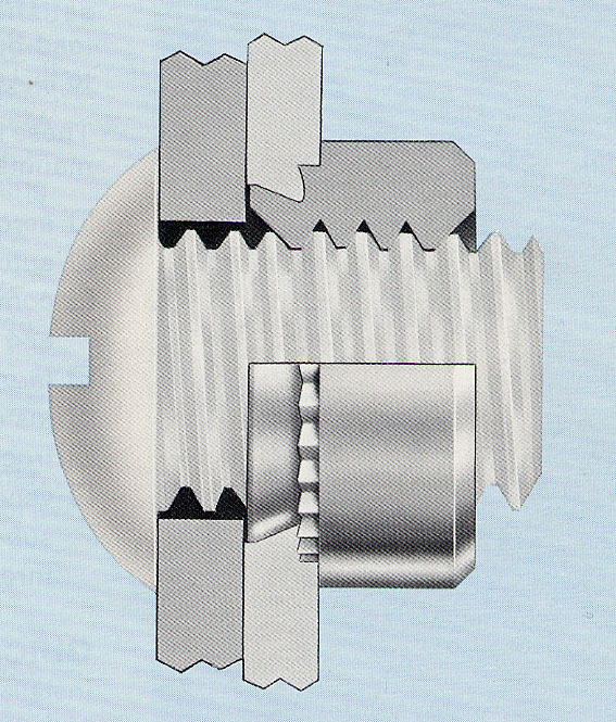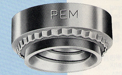 Illustrations of of PEM nuts from Pennsylvania Engineering and Manufacturing Corp. catalog. X-ray view. Optical view. .